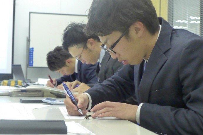 難しい図面と向き合い、とっても真剣です!