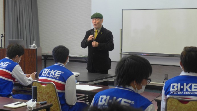 今日のメインは黒田クロ先生による講話です。どんな講話なのか?と質問が多く、新入社員たちは楽しみにしています。お待ちかねの黒田クロ先生の登場です!