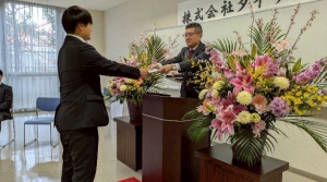 式の中では、藤田社長からの辞令交付が行われた後、新入社員一人ひとりが決意表明を行いました。